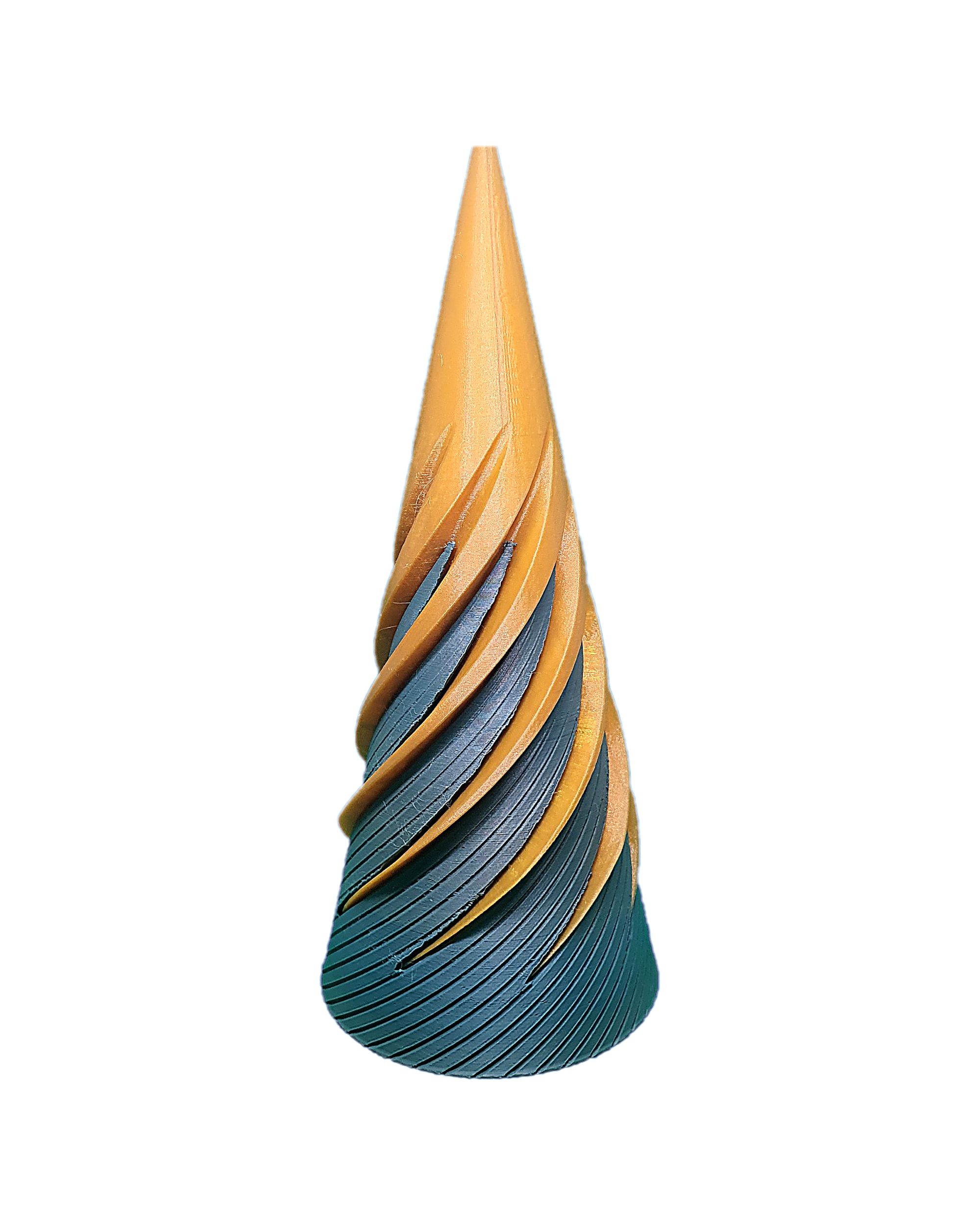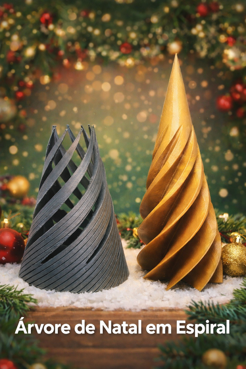 A Árvore de Natal Decorativa Espiral em PLA é uma escultura moderna que traz um visual contemporâneo para a decoração natalina. Produzida por impressão 3D em PLA, a peça é composta por duas partes encaixáveis — base inferior e parte superior em espiral — formando uma árvore elegante e escultural.