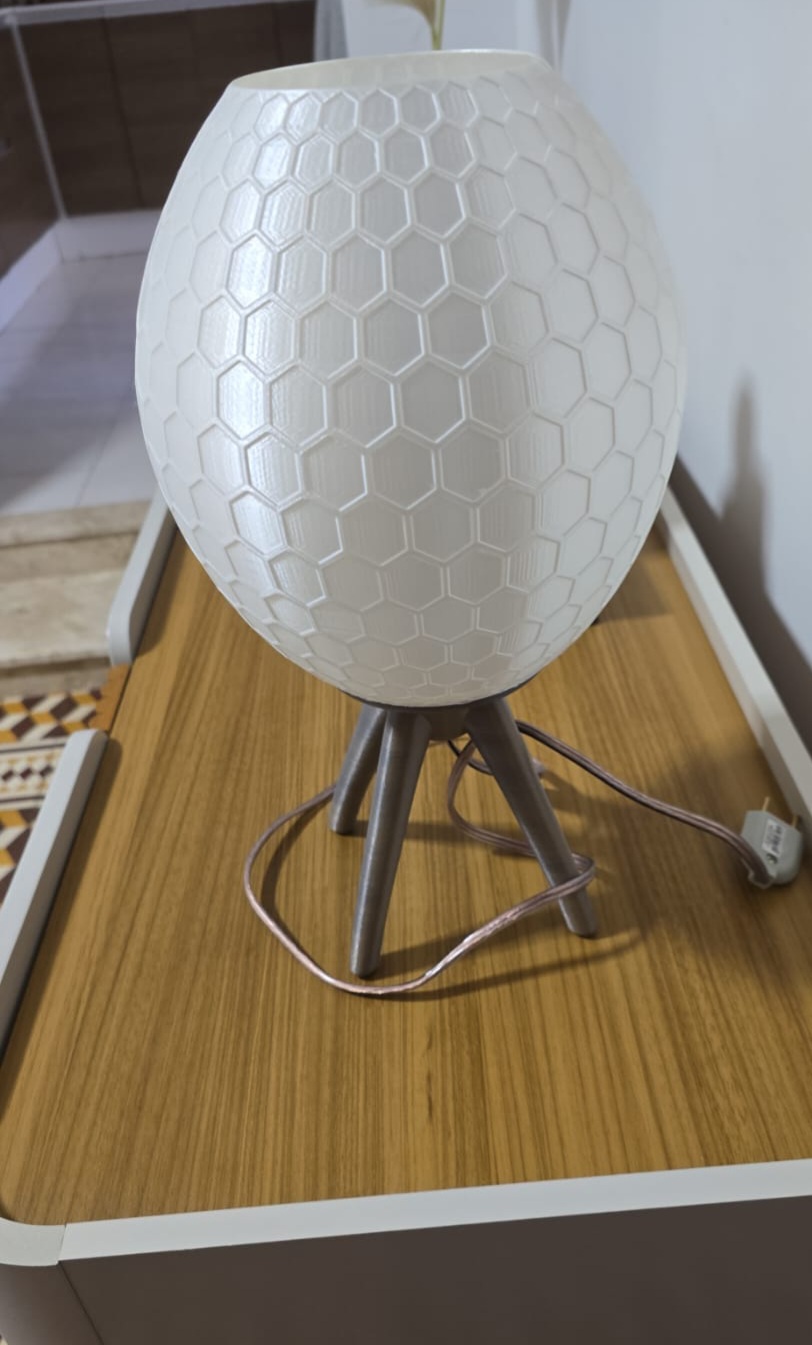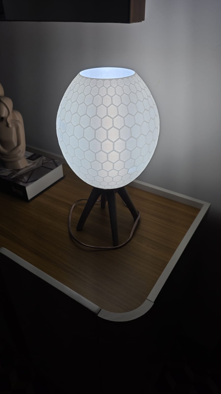 Luminária de mesa decorativa em PLA com design colmeia e base. Ideal para criar iluminação suave e aconchegante em quartos, escritórios e ambientes modernos.